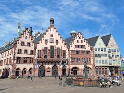 Do you want "a bit of everything"? A mix of the old town, the new old town, and modern Frankfurt... all in just 1-2 hours? Then this is the right tour for you. We will show you Frankfurt's most important sights on a particularly varied route. The path leads us from the skyscraper canyons of the banking district, through the modern architecture of the city center, past St. Paul's Church, and up to the Römer. Then through the new old town, past the Imperial Cathedral, and along the banks of the Main River. The tour ends with an impressive view of the skyline from the Iron Bridge.